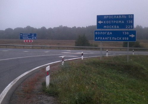 Выхожу на М-8 из Данилова. На одном указатели до Москвы 229 километров, на другом — 328. Где, интересно, тут короткая дорога?
