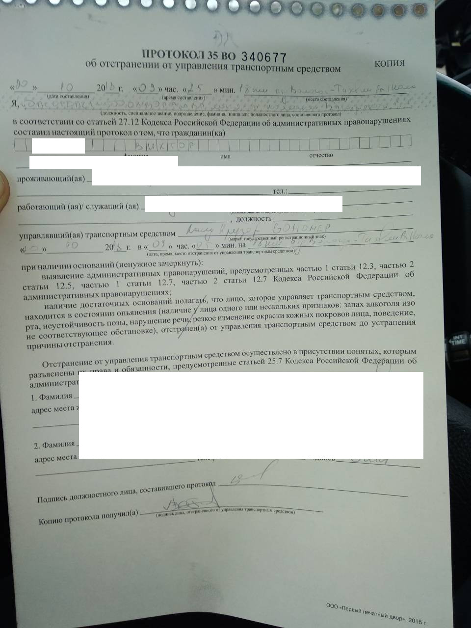 Несмотря на то, что в протоколе нет всех данных, а именно того, что он управлял без категории Е и состав ТС больше 3,5 и остается только догадываться по протоколу, что протокол выписал именно по этому, поскольку видно, что машина тойота лэнд крузер с прицепом и данные о ВУ, а именно о том, что есть категория В.