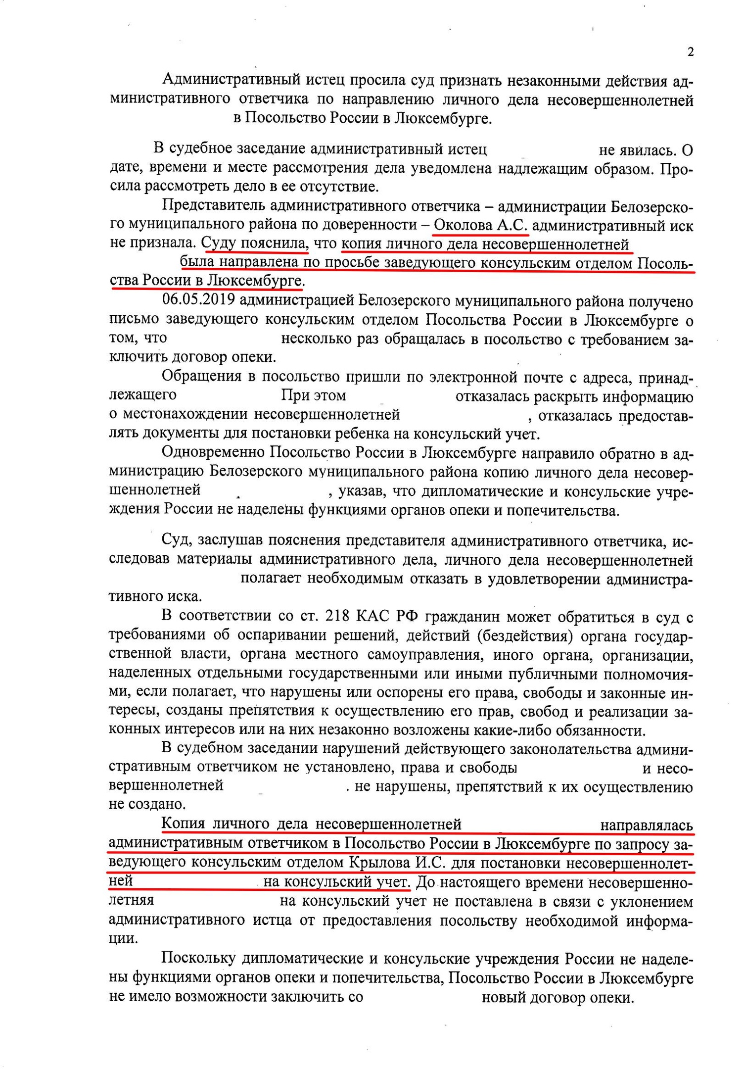 14 августа 2019 года было вынесено постановление по делу об АПН по статье 5.35 ч.1 КоАП РФ, при этом защитника к участию в деле не допустили, рассмотрение дела объявили закрытым на основании того что на деле будут оглашены персональные данные опекуна и несовершеннолетней, однако в соответствии с законом такие основания не могут быть закоными, это указал Верховный суд в своем постановлении №35